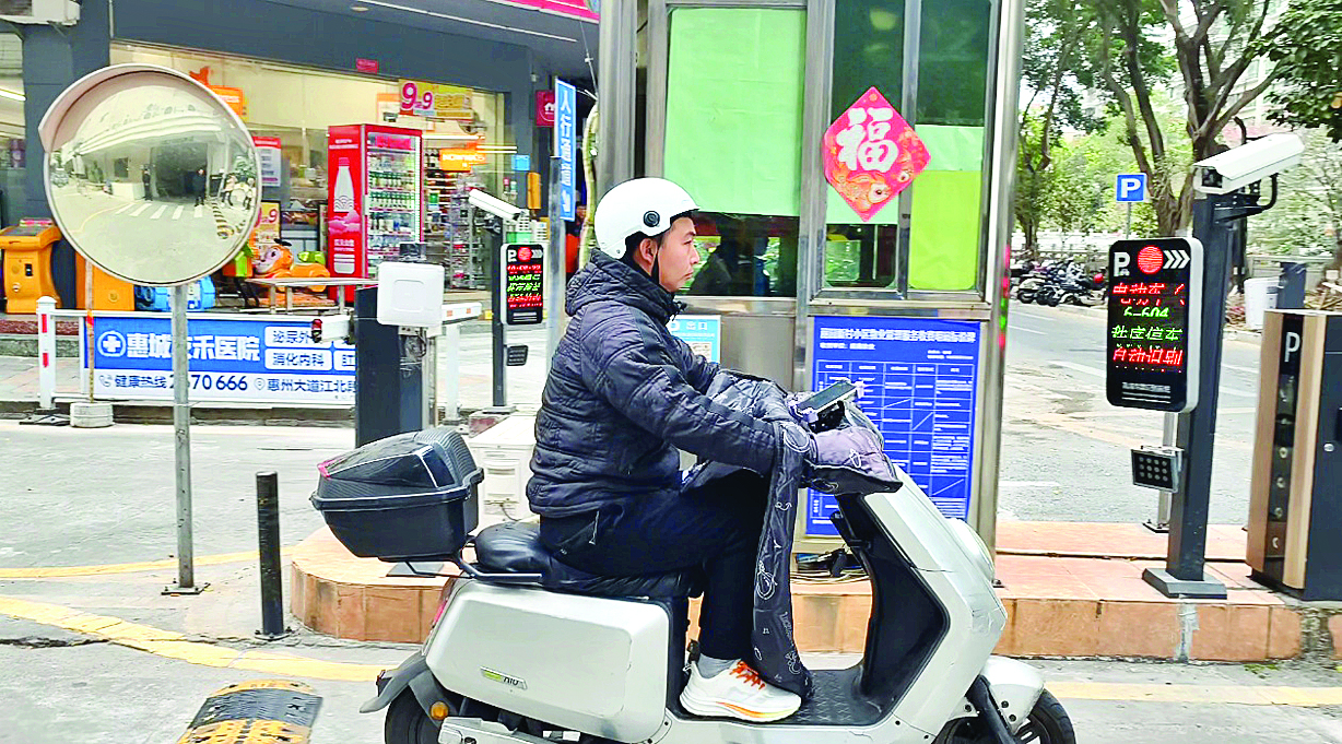 麗園新村電動自行車車主經(jīng)過電子標(biāo)簽系統(tǒng)感應(yīng)機(jī)后,實現(xiàn)無感通行。 惠州日報記者葉麗莎 攝