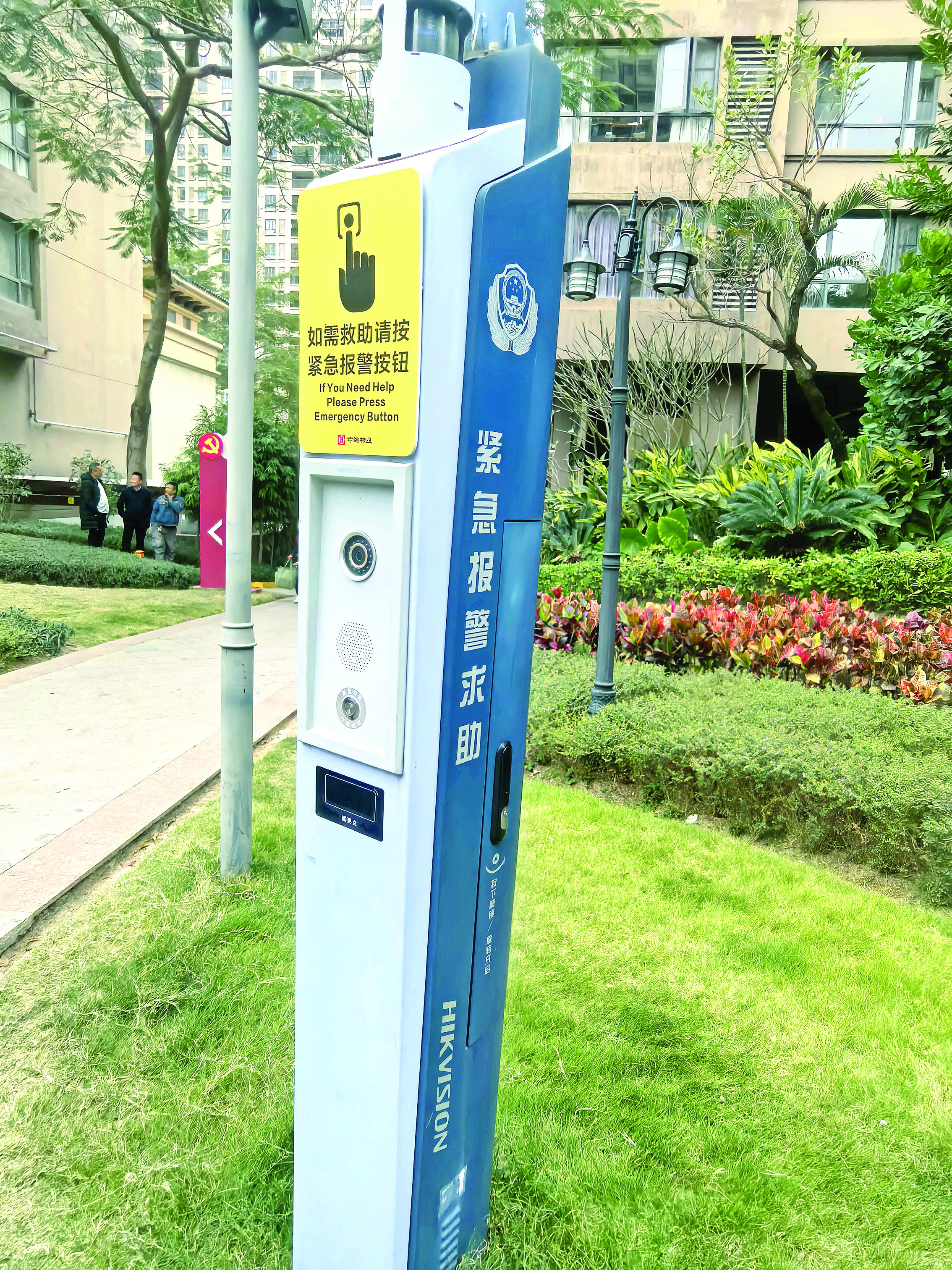 中海凱旋城小區(qū)搭載了AI智能監(jiān)控攝像頭的緊急報警柱。惠州日報記者楊帆 攝