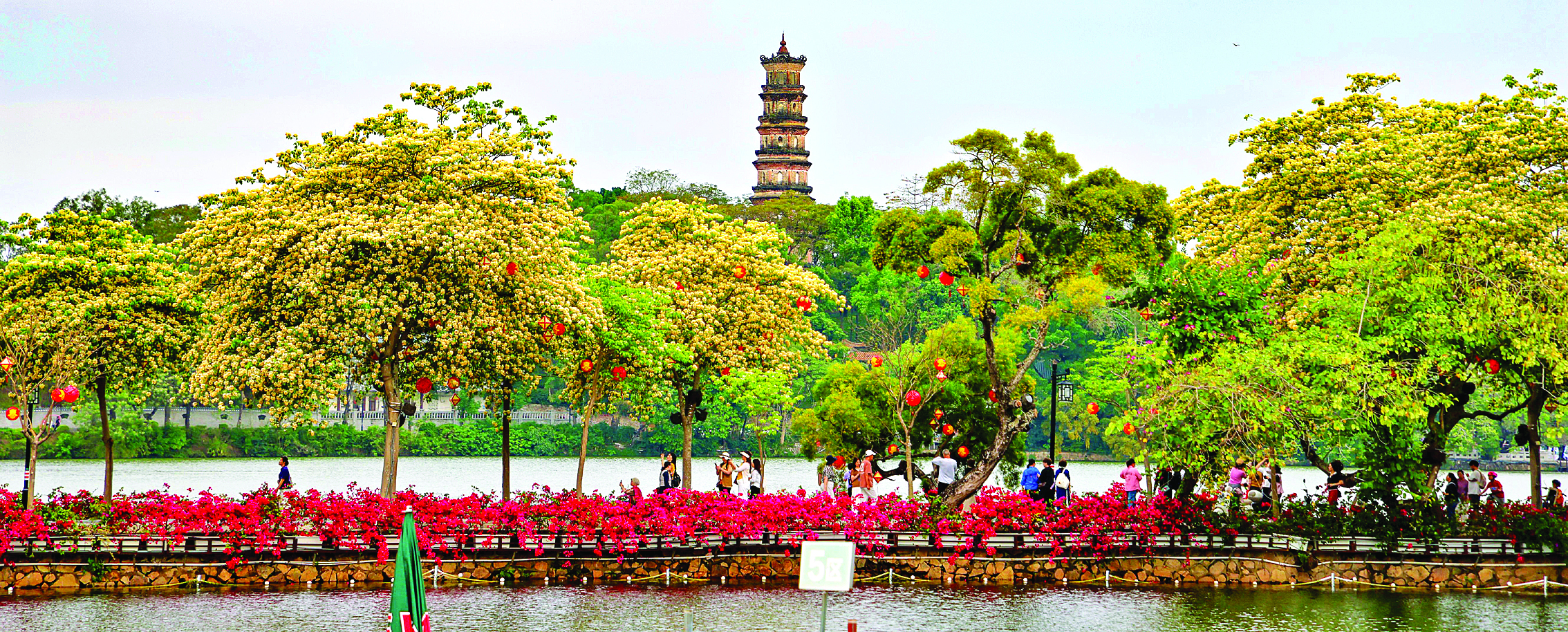 微風(fēng)拂面,春和景明。在惠州西湖的瀲滟水色間,陳公堤像一條被花海浸透的絲帶。魚(yú)木花開(kāi),滿樹(shù)金黃如瀑傾瀉,落英紛飛似蝶翩躚。三角梅熱烈綻放,艷紅、粉紫的花團(tuán)順著堤岸肆意蔓延,與澄澈的湖水相映成趣。往來(lái)游人或駐足拍照,或漫步花下,春日的西湖也因這滿堤繁花更添溫婉靈動(dòng)。