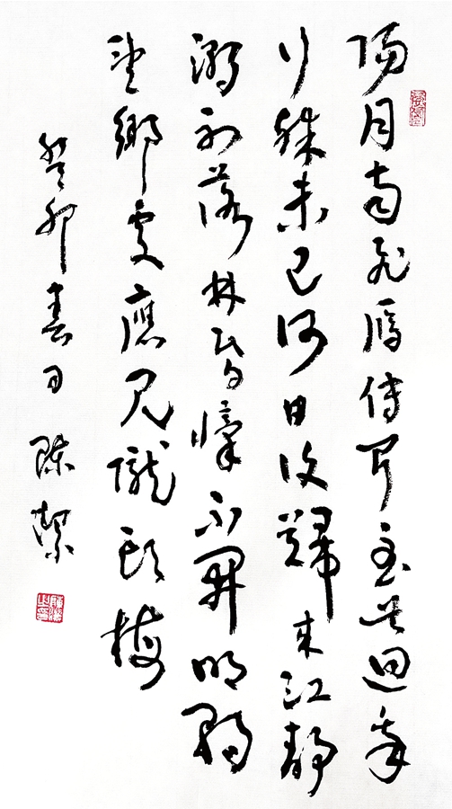 “書法既要有深厚的古文化功底,又要有胸襟、膽略、氣勢(shì)與激情,缺一不可,缺少任何一個(gè)都有可能使創(chuàng)作出的作品缺乏氣勢(shì)與力度,一幅好的作品更高的要求是把握氣韻,必須一氣呵成。”陳潔告訴記者,學(xué)習(xí)書法不能只學(xué)習(xí)書寫的形,更重要的是書法的“神”,得其神韻方為真。