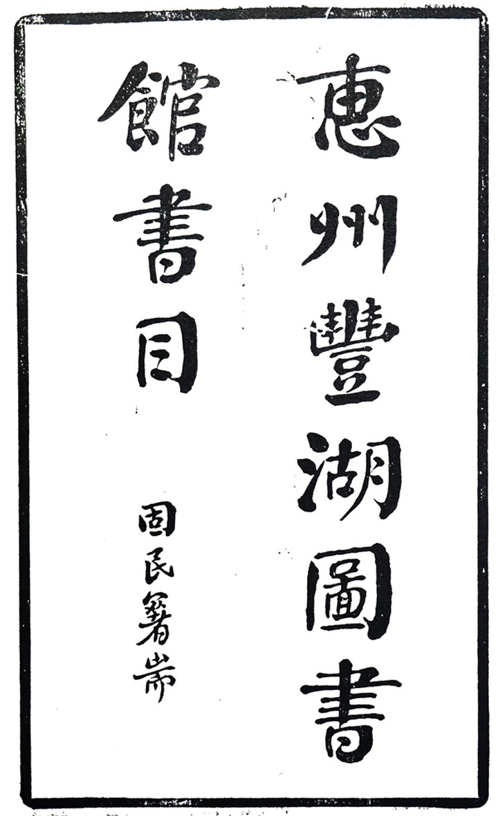 《惠州私立豐湖圖書館書目》書影 。