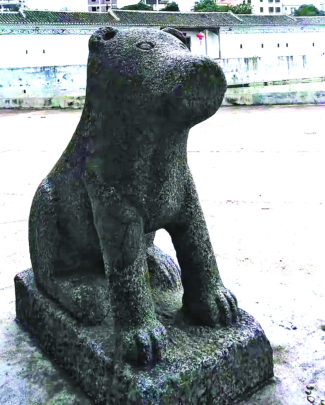 在民警的護(hù)送下,石狗被完好無(wú)損地送回。村民們敲鑼打鼓,燃放鞭炮,喜迎石狗回家,并在加固的石座上寫上“2015.2.6歸”。那么被石狗守護(hù)的圍龍屋,就叫“石狗屋”了嗎?