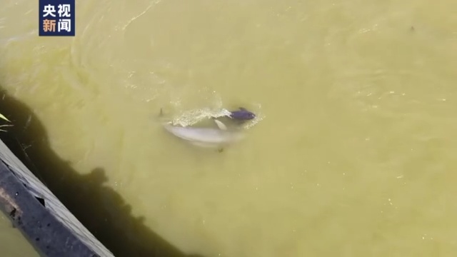 據(jù)該保護(hù)區(qū)的工作人員介紹,這頭新出生的小江豚長約50厘米,體重約4公斤,目前依靠母豚的乳汁維持營養(yǎng),雖然體型較小,但健康活潑。