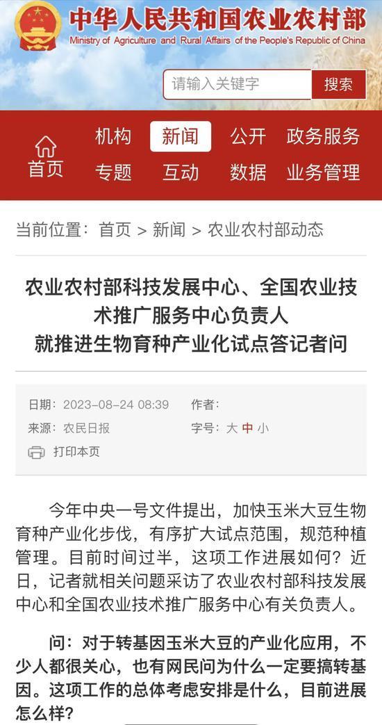 8月24日,針對“為何一定要搞轉(zhuǎn)基因”“轉(zhuǎn)基因食品是否會(huì)致癌、引起不孕不育”等問題,農(nóng)業(yè)農(nóng)村部科技發(fā)展中心和全國農(nóng)業(yè)技術(shù)推廣服務(wù)中心有關(guān)負(fù)責(zé)人作出權(quán)威回應(yīng)。
