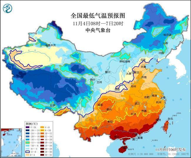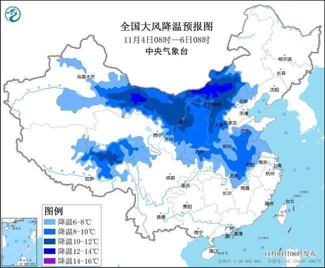 中央氣象臺11月4日06時(shí)繼續(xù)發(fā)布寒潮藍(lán)色預(yù)警: