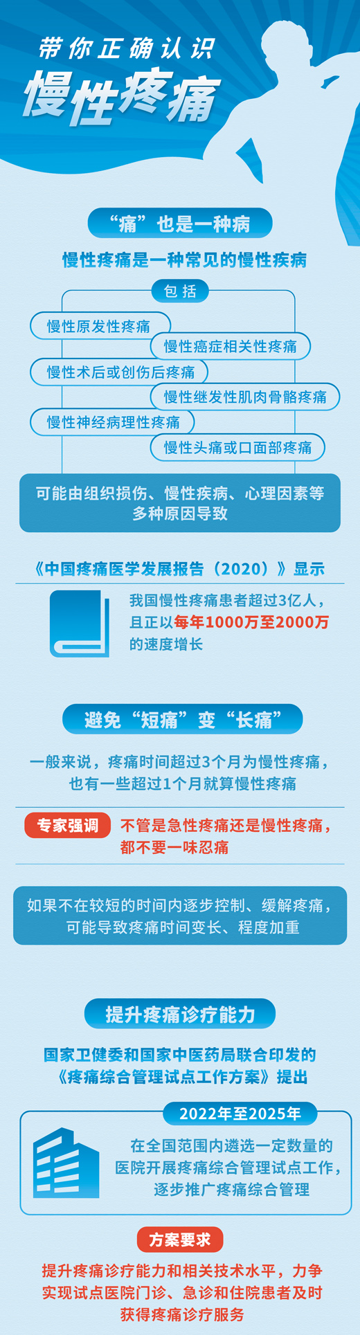 數據顯示,我國慢性疼痛患者已超3億人,但知曉率低、就診率低、完全緩解率低,負“痛”前行降低了患者的生存質量。專家表示,加強我國疼痛管理和國民疼痛認知教育至關重要。程 碩制圖(新華社發(fā))