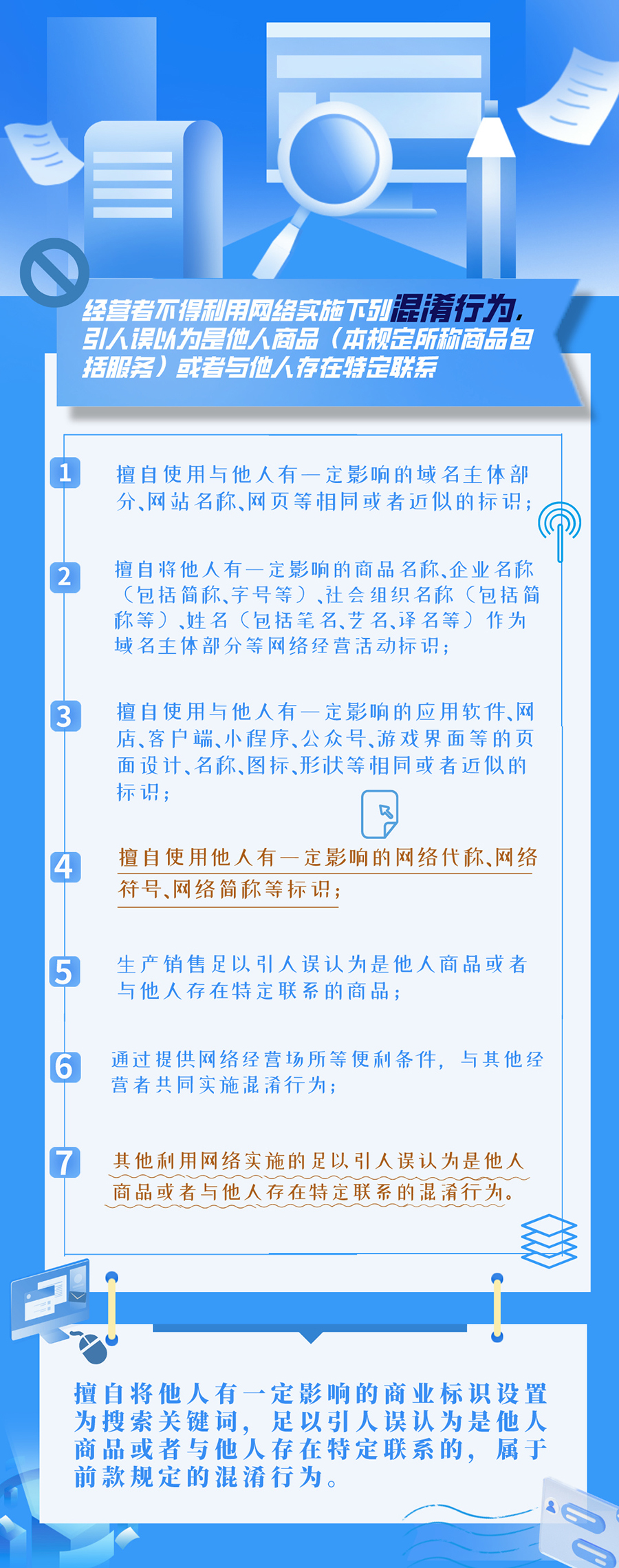 近日,市場監(jiān)管總局發(fā)布《網(wǎng)絡(luò)反不正當競爭暫行規(guī)定》,《規(guī)定》共五章、43條,其中在“網(wǎng)絡(luò)不正當競爭行為”部分按類提煉梳理共計20條,明確認定標準。