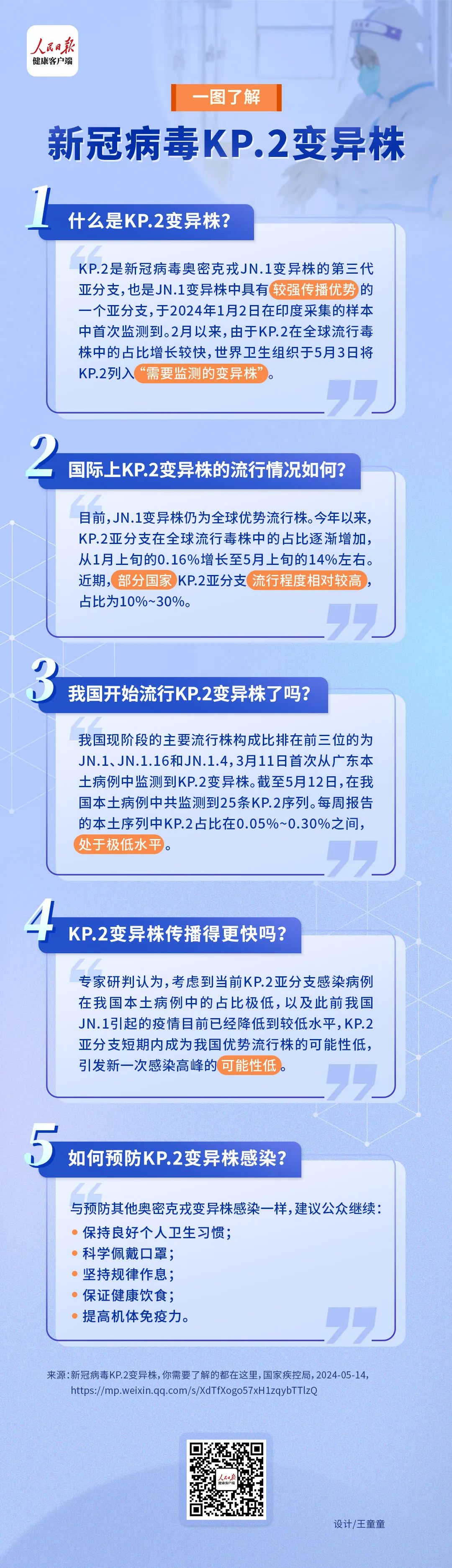 “KP.2變異株是JN.1的衍生株,在最外面的刺突蛋白上有兩個(gè)氨基酸的點(diǎn)突變,導(dǎo)致傳染性增強(qiáng),這可能是其迅速成為主流變異株的主要原因,在國際上看,現(xiàn)在已經(jīng)超過JN.1成為一些國家的主要流行毒株,正是因此,也有很多人擔(dān)心引發(fā)新一輪的感染高峰,但是需要明確的是,只要致病力沒有明顯增加,就暫時(shí)可以不用過多擔(dān)心。”趙衛(wèi)解釋。