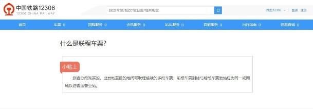 12306官網(wǎng)對(duì)聯(lián)程車票的解釋(官網(wǎng)截圖)