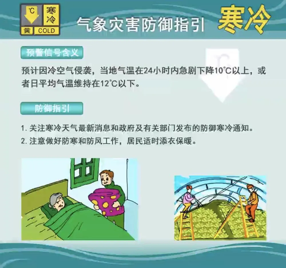 寒冷黃色預(yù)警信號(hào)防御指引。廣東省氣象服務(wù)中心制圖
