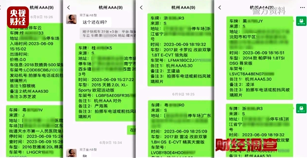 犯罪分子的聊天群里每天在滾動(dòng)發(fā)布著各種車輛的實(shí)時(shí)停車信息,包括了車牌號(hào)、停車場(chǎng)具體地址、進(jìn)場(chǎng)時(shí)間等等。