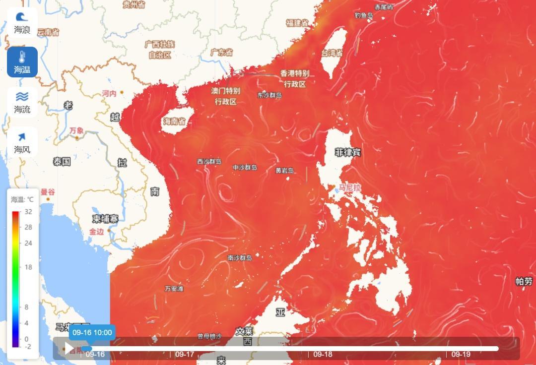 秋臺(tái)風(fēng)一般是指8月下旬或9月以后,有明顯冷空氣活動(dòng)之后的臺(tái)風(fēng),此時(shí)熱帶西北太平洋和我國(guó)南海的海溫往往比7—8月更高,暖水更深厚,利于臺(tái)風(fēng)發(fā)展。比如從中國(guó)海洋預(yù)報(bào)網(wǎng)的圖看,西北太平洋海溫基本超過(guò)30℃,給臺(tái)風(fēng)發(fā)展持續(xù)提供能量。