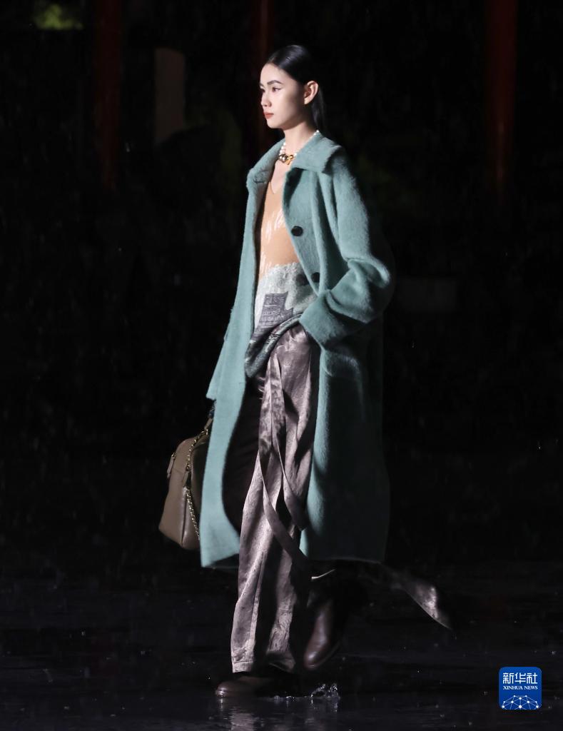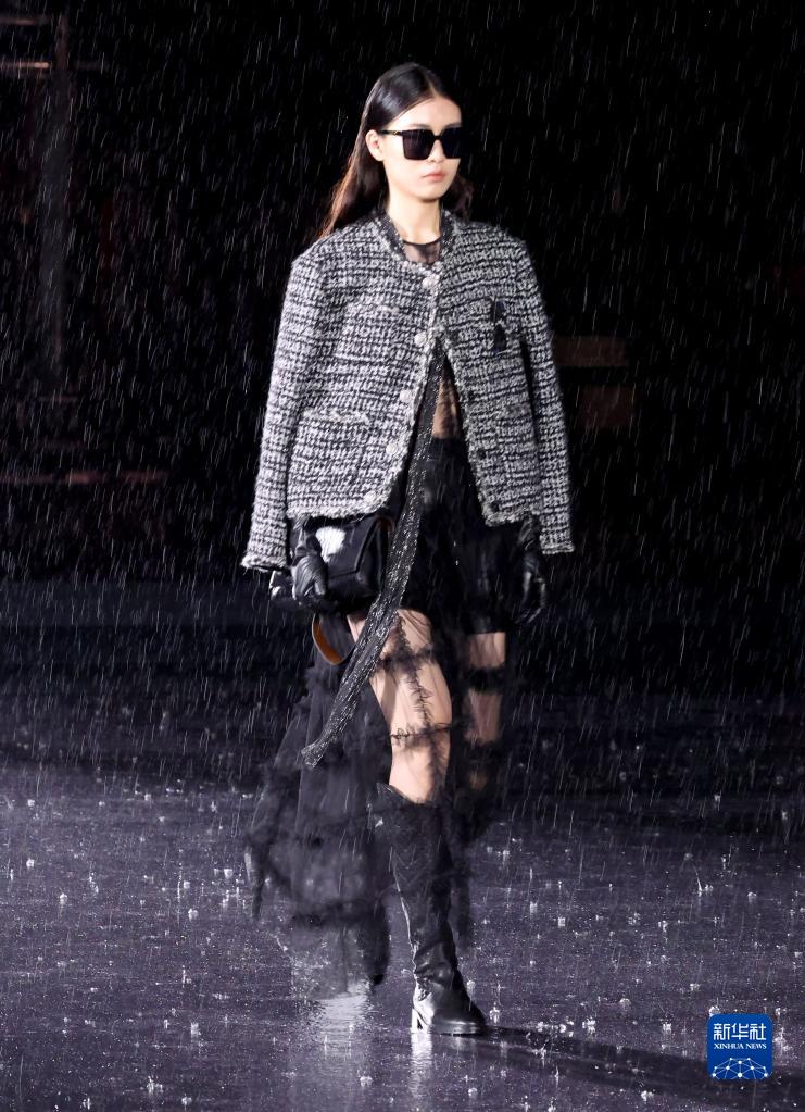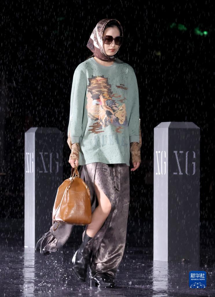 5月16日,模特在雨中展示XG 2023冬季系列時裝。