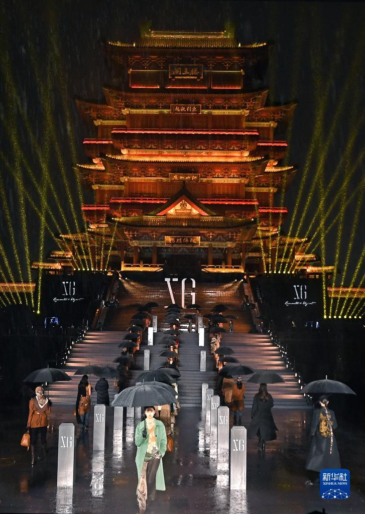 當(dāng)日,XG 2023冬季時裝秀在江西省南昌市滕王閣景區(qū)舉行。新華社記者 萬象 攝