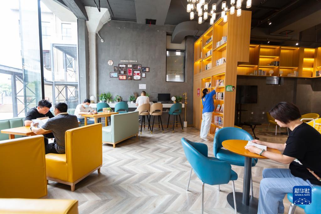 5月16日,市民在南昌市孺子書房·東湖意庫館內(nèi)閱讀。孺子書房打造了舒適的閱讀空間,豐富讀者的閱讀體驗(yàn)。