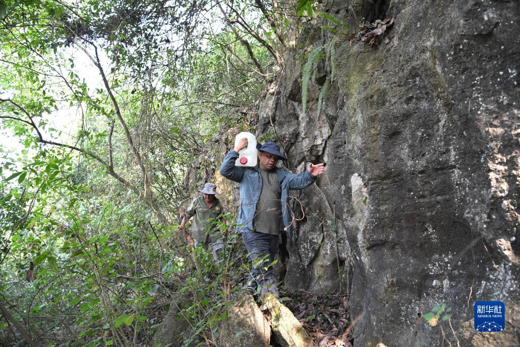 岜盆自然保護區(qū)屬于喀斯特巖溶山區(qū),在降雨量較少的時候,白頭葉猴就會遇到飲水困難。為此,蒙育寧和護林員一起在白頭葉猴平時喝水的地方分別放置了水盆、水缸,遇到山上少雨的時候,大家就一起扛著幾十公斤重的大水壺上山給猴子送水。