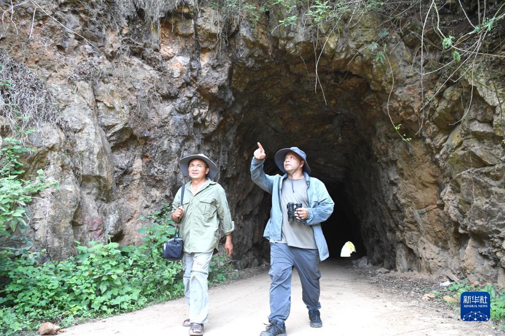 蒙育寧(右)和同事在岜盆自然保護區(qū)巡護(5月18日攝)。