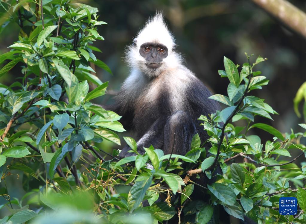 這是在岜盆自然保護區(qū)拍攝的白頭葉猴(5月18日攝)。