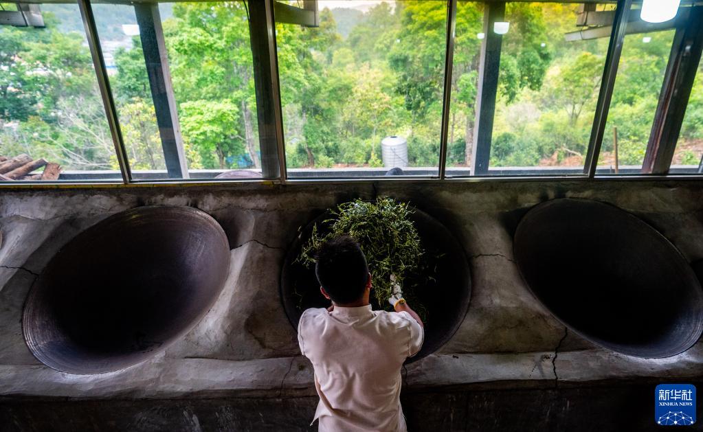 這是2023年5月17日,中國(guó)云南省勐海縣布朗山布朗族鄉(xiāng)的茶農(nóng)在炒茶。