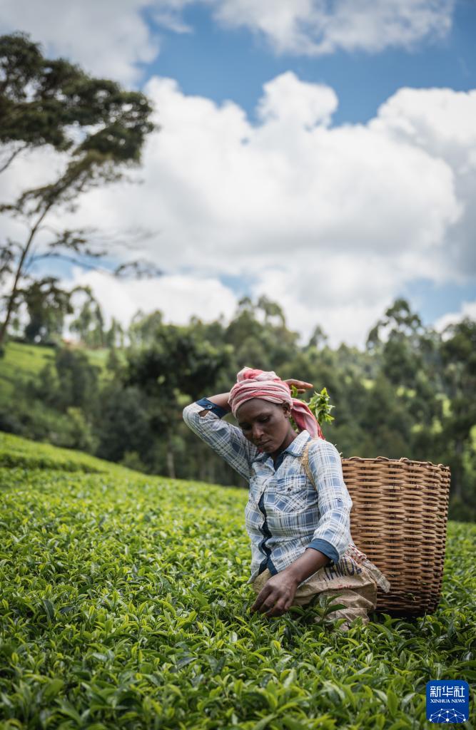 這是2023年5月4日,工人在肯尼亞首都內(nèi)羅畢附近的茶園采茶。