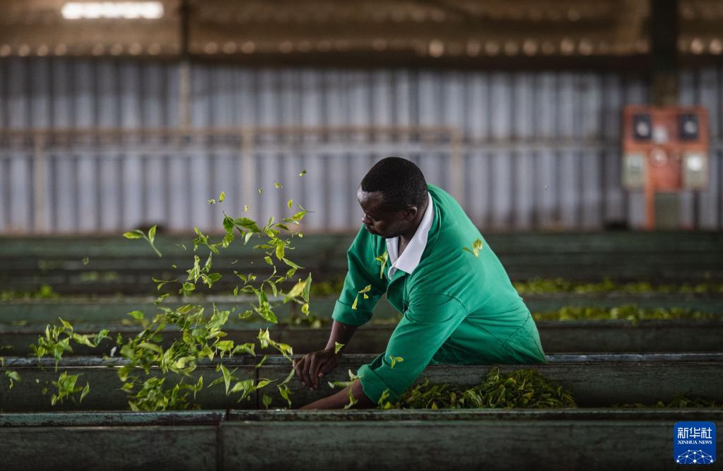 這是2023年5月4日,工人在肯尼亞首都內(nèi)羅畢附近的茶廠里工作。