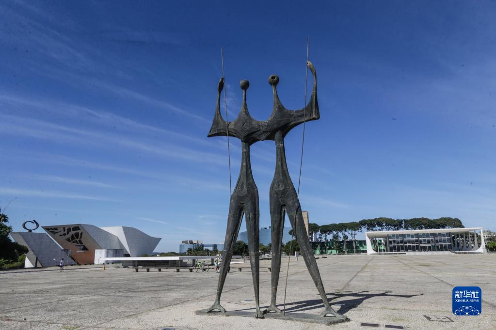 這是5月22日在巴西首都巴西利亞三權(quán)廣場聯(lián)邦最高法院前拍攝的一尊雕像。