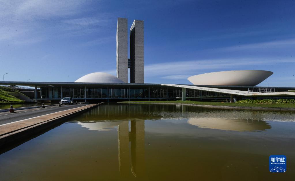 這是5月22日在巴西首都巴西利亞拍攝的巴西國會大廈。