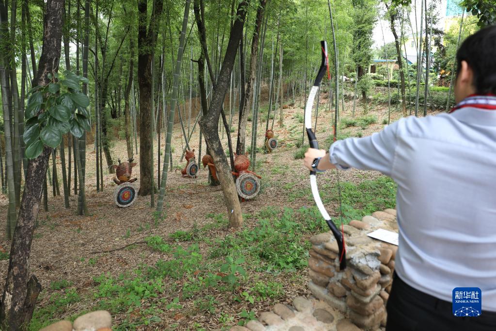 5月24日,在浙江省龍游縣浦山村,游客體驗(yàn)射箭項(xiàng)目。