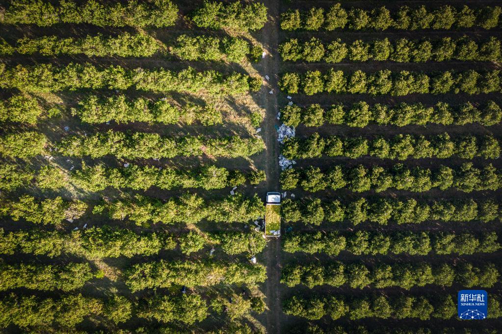 5月24日,工人在南非西北省一處柑橘農(nóng)場忙碌。