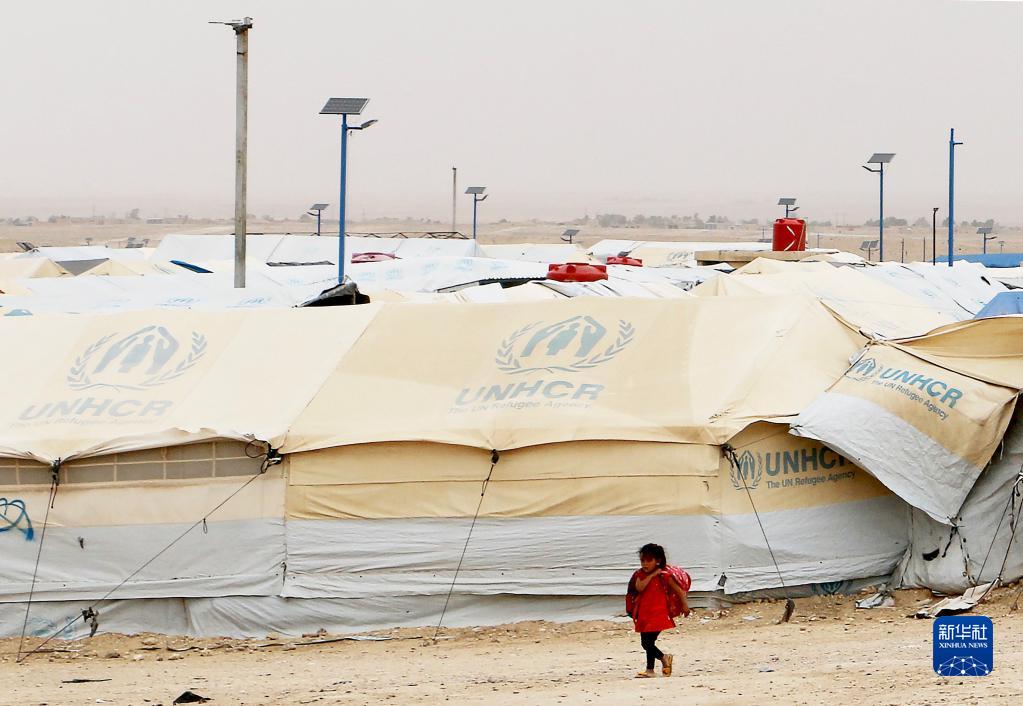 5月28日,一名女孩走在敘利亞哈塞克省的霍爾難民營。