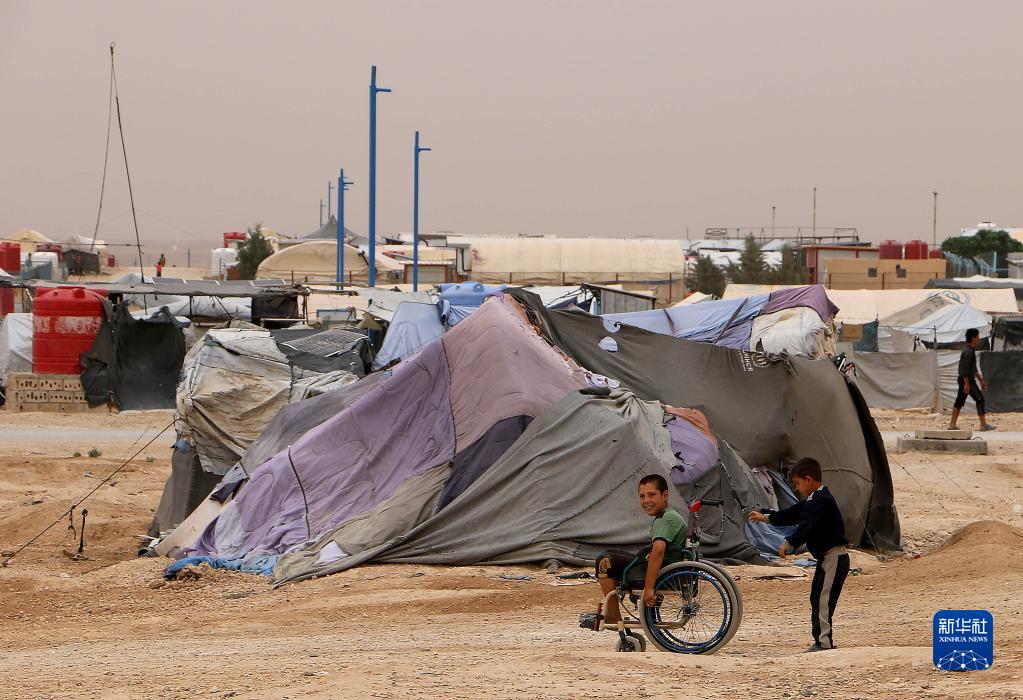 這是5月28日在敘利亞哈塞克省拍攝的霍爾難民營內(nèi)的人們。