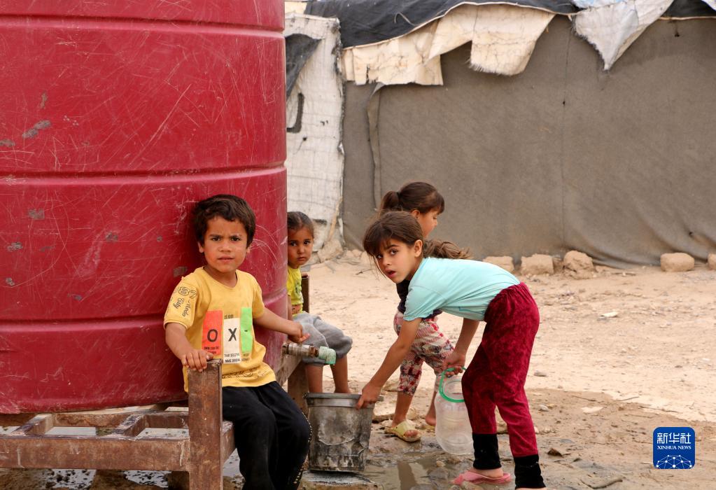 這是5月28日在敘利亞哈塞克省拍攝的霍爾難民營內(nèi)的孩子們。