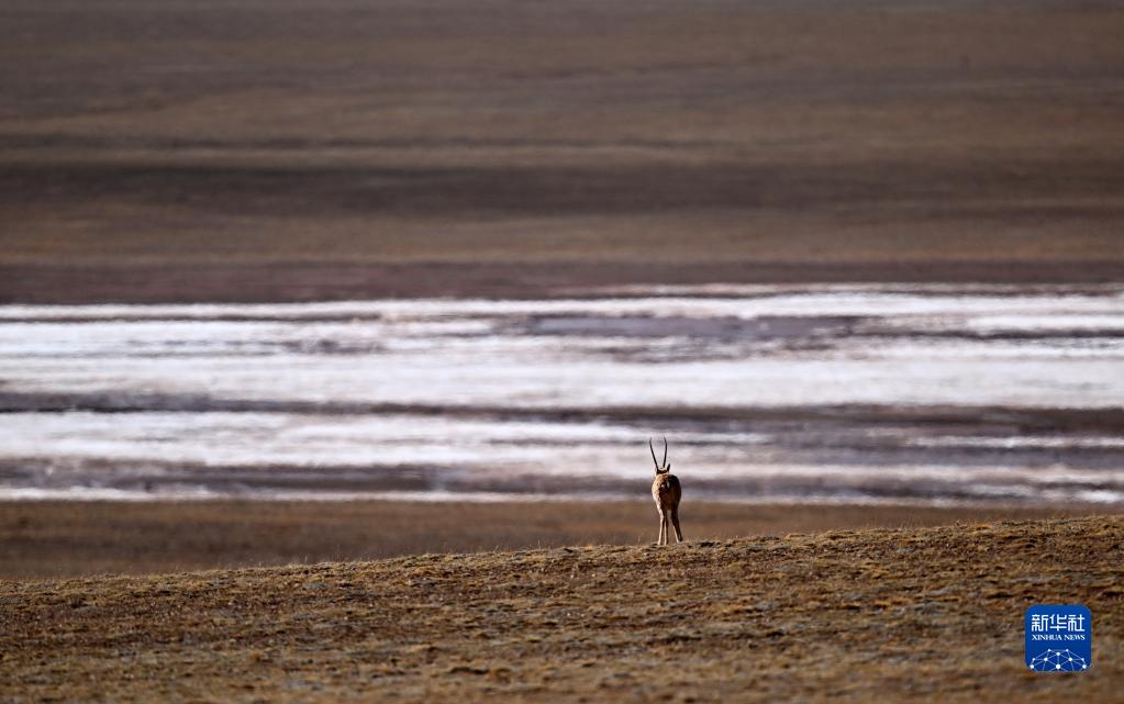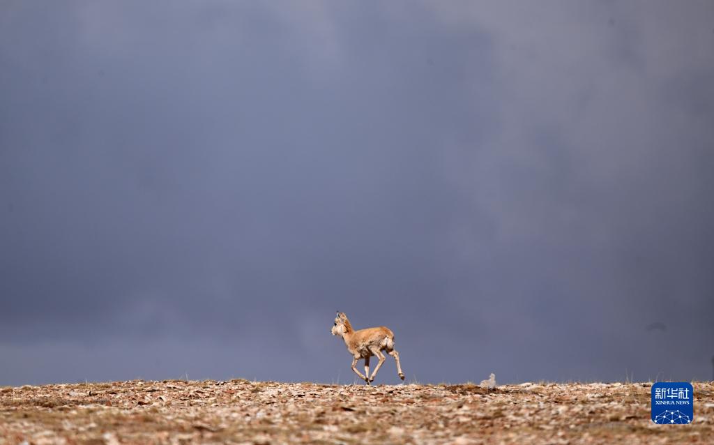 5月28日,一只藏羚羊在青海省玉樹藏族自治州境內(nèi)的草原上活動(dòng)。