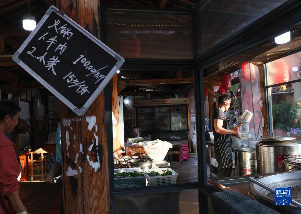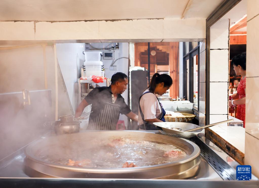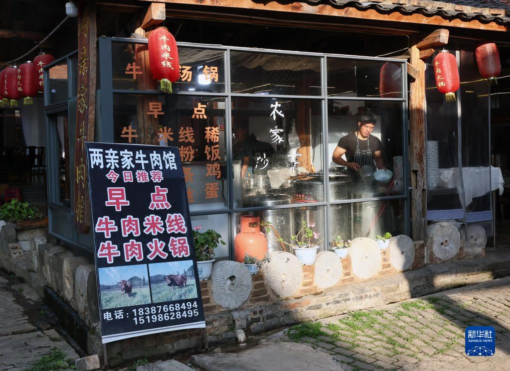 5月31日,普者黑景區(qū)仙人洞村一家餐館的工作人員在準(zhǔn)備早餐。