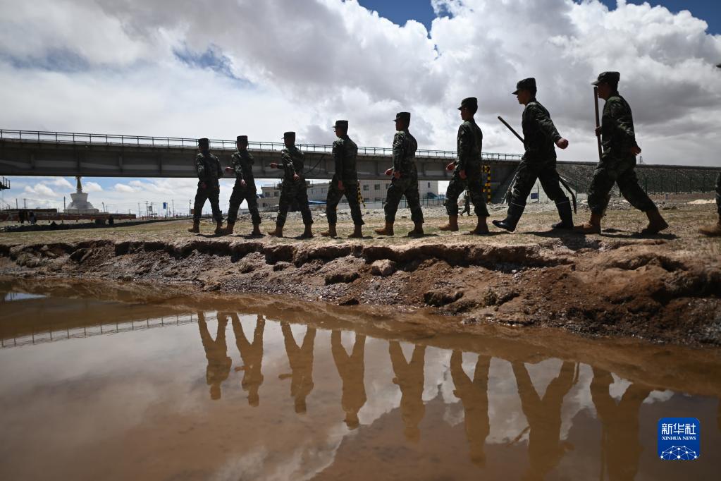 6月4日,武警青海總隊海西支隊官兵在“守衛(wèi)長江源”主題黨日活動中。