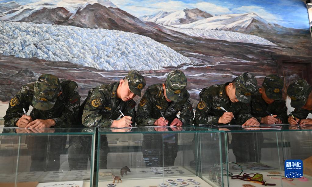 6月4日,武警青海總隊海西支隊官兵在“長江1號”郵局內(nèi)寫明信片,為家人送去來自長江源頭的祝福。