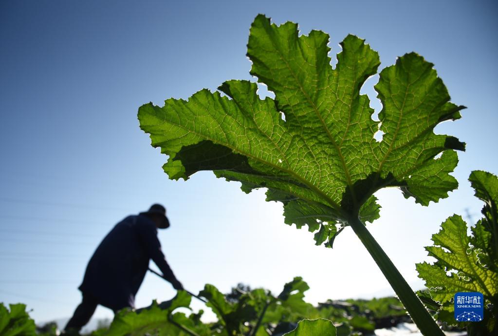 6月5日,在云南省麗江市玉龍納西族自治縣黃山街道長(zhǎng)水社區(qū),菜農(nóng)在田里勞作。