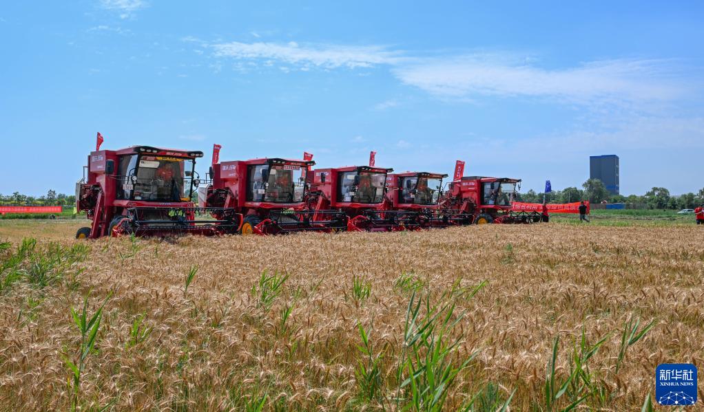 當(dāng)日,天津市2023年“三夏”機(jī)械化生產(chǎn)現(xiàn)場(chǎng)推動(dòng)會(huì)在天津市靜海區(qū)蔡公莊鎮(zhèn)舉行,30余臺(tái)(套)農(nóng)機(jī)設(shè)備現(xiàn)場(chǎng)展開(kāi)小麥機(jī)收、玉米播種、田間植保等機(jī)械化作業(yè),20余臺(tái)(套)智能、高效農(nóng)機(jī)具進(jìn)行了現(xiàn)場(chǎng)展示,標(biāo)志著天津市“三夏”生產(chǎn)拉開(kāi)大幕,大面積機(jī)收作業(yè)正式啟動(dòng)。