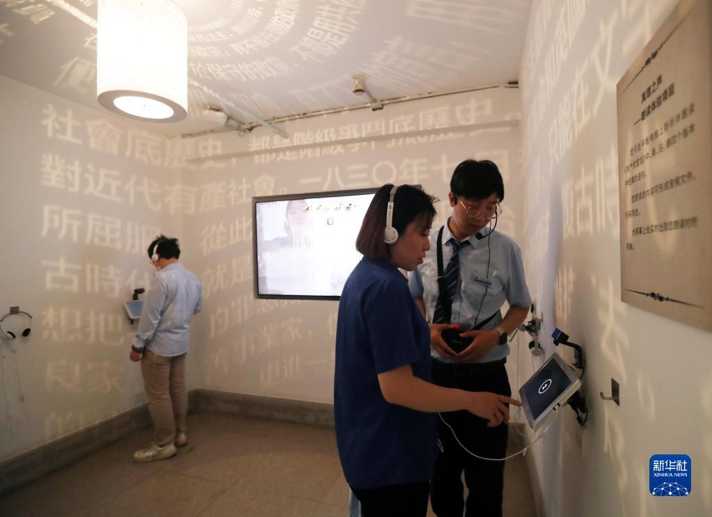 6月9日,在又新印刷所舊址內,參觀者通過智能屏互動朗讀《共產黨宣言》。