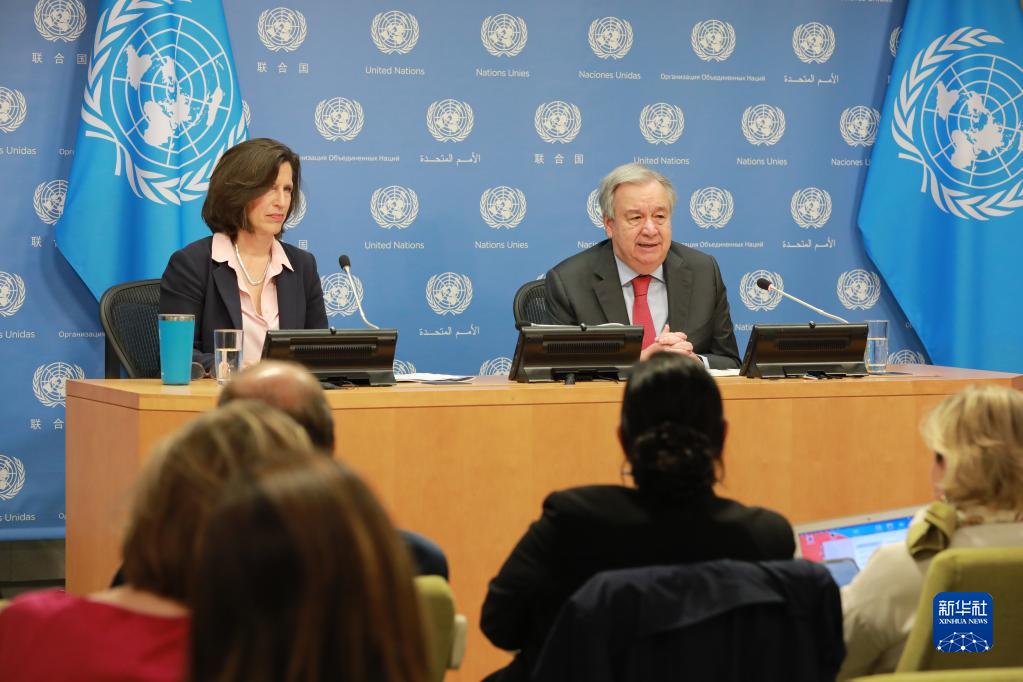 6月12日,在位于紐約的聯(lián)合國(guó)總部,聯(lián)合國(guó)秘書長(zhǎng)古特雷斯(右)在“數(shù)字平臺(tái)信息誠(chéng)信政策簡(jiǎn)報(bào)”發(fā)布記者會(huì)上講話。
