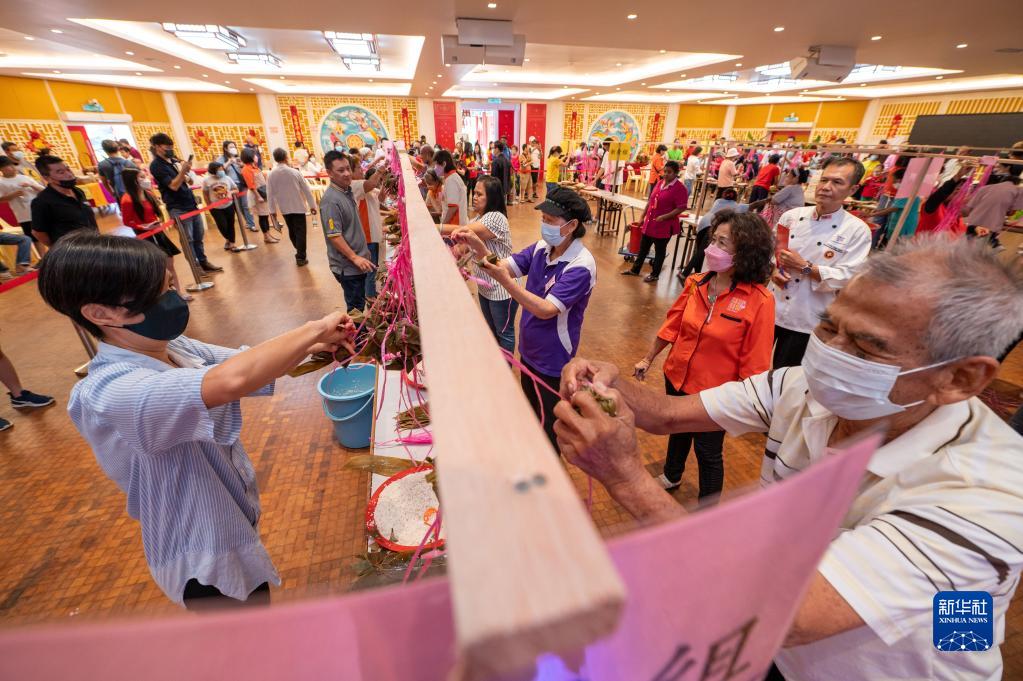 6月18日,人們?cè)隈R來(lái)西亞吉隆坡參加裹粽比賽。