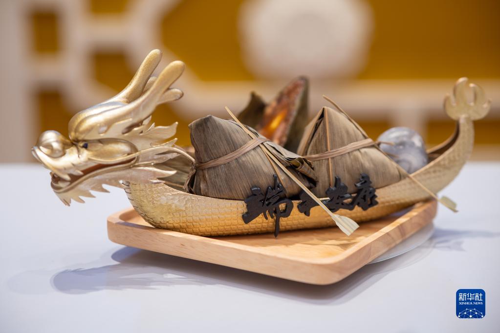 這是6月18日在馬來(lái)西亞吉隆坡的裹粽比賽現(xiàn)場(chǎng)拍攝的粽子。