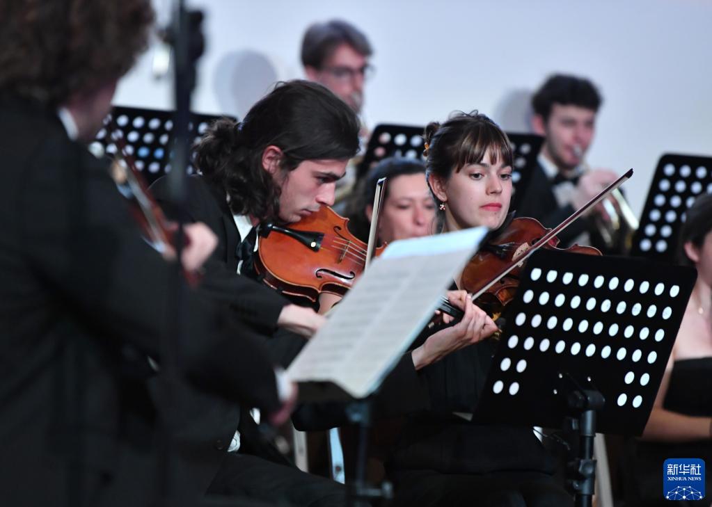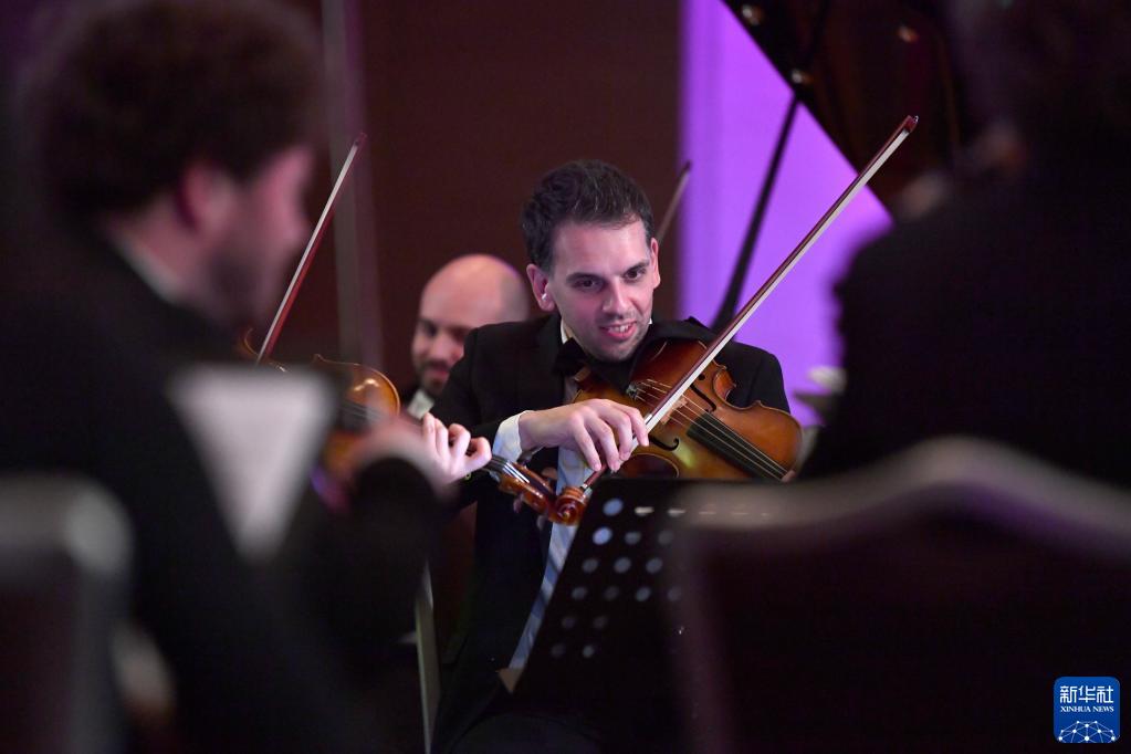 6月18日,在瑞士日內(nèi)瓦,瑞士圣普雷室內(nèi)樂團(tuán)在“唱響‘一帶一路’的贊歌”音樂招待會上演奏。