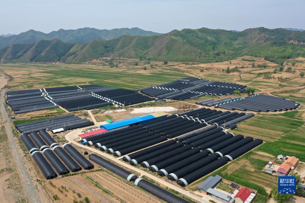 這是隆化縣章吉營(yíng)鎮(zhèn)成片的食用菌大棚(6月26日攝,無(wú)人機(jī)照片)。