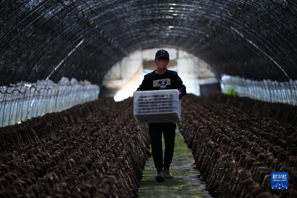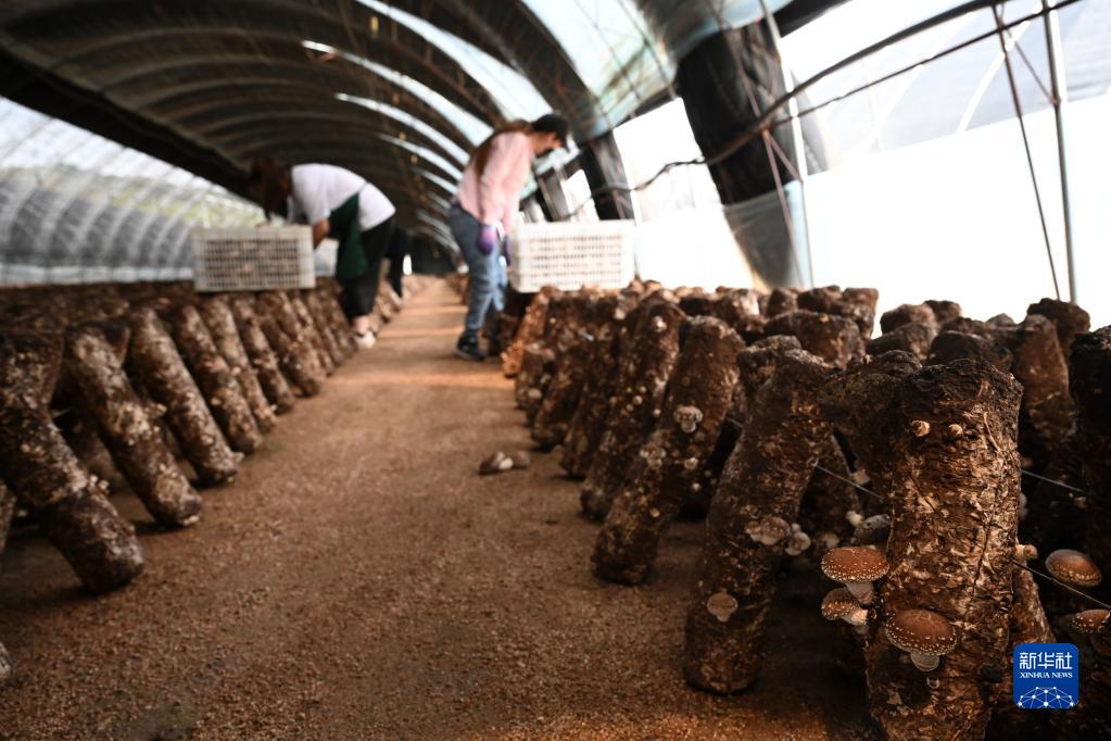 6月26日,農(nóng)民在隆化縣章吉營(yíng)鎮(zhèn)一處食用菌大棚采摘香菇。