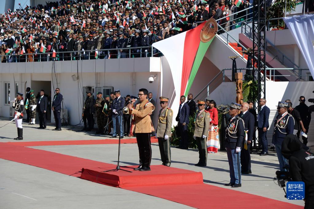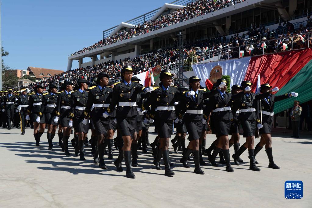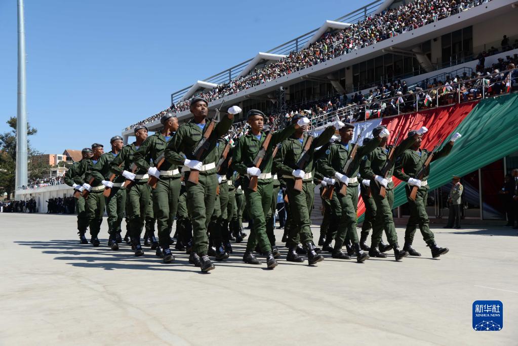 當(dāng)日,馬達(dá)加斯加舉行國慶日閱兵活動(dòng),慶祝獨(dú)立63周年。新華社發(fā)(西塔卡·拉喬納里松攝)