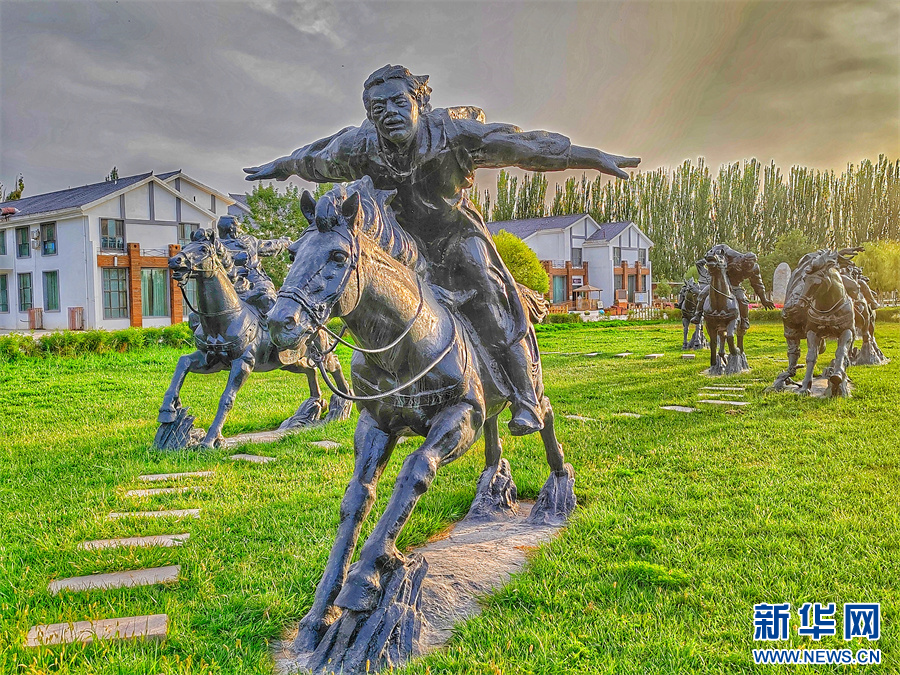 造型獨(dú)特的雕塑與蒙古包相互映襯,盡顯草原文化魅力。