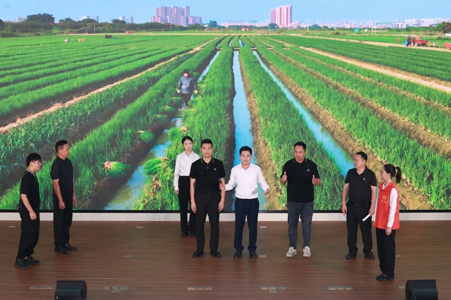 “村民們,今天是幸福村的大日子,大家期盼已久的‘百千萬工程’項目定啦,今天舉辦奠基儀式。”陳江街道幸福村的鄉(xiāng)賢、企業(yè)家、大學生一起以情景劇表演的方式展示了該村正在建設的現(xiàn)代化農業(yè)產業(yè)和特色化鄉(xiāng)村文旅產品。