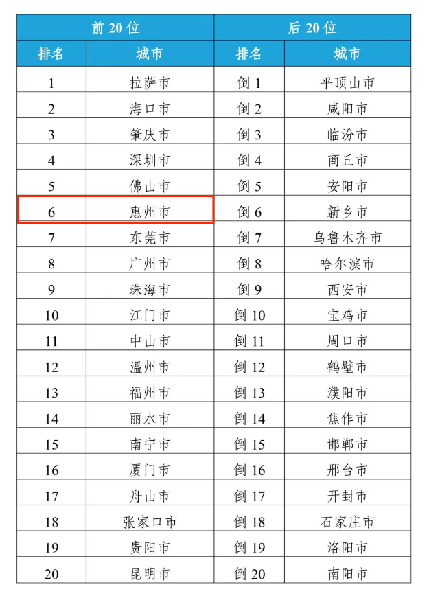 3月18日,生態(tài)環(huán)境部公布2024年2月全國環(huán)境空氣質(zhì)量狀況——168個(gè)重點(diǎn)城市中,空氣質(zhì)量排名依次是拉薩、海口、惠州、麗水、深圳、肇慶等城市,惠州排名第三;PM2.5濃度排名依次是拉薩、海口、肇慶、深圳、佛山、惠州等城市,惠州排名第六。