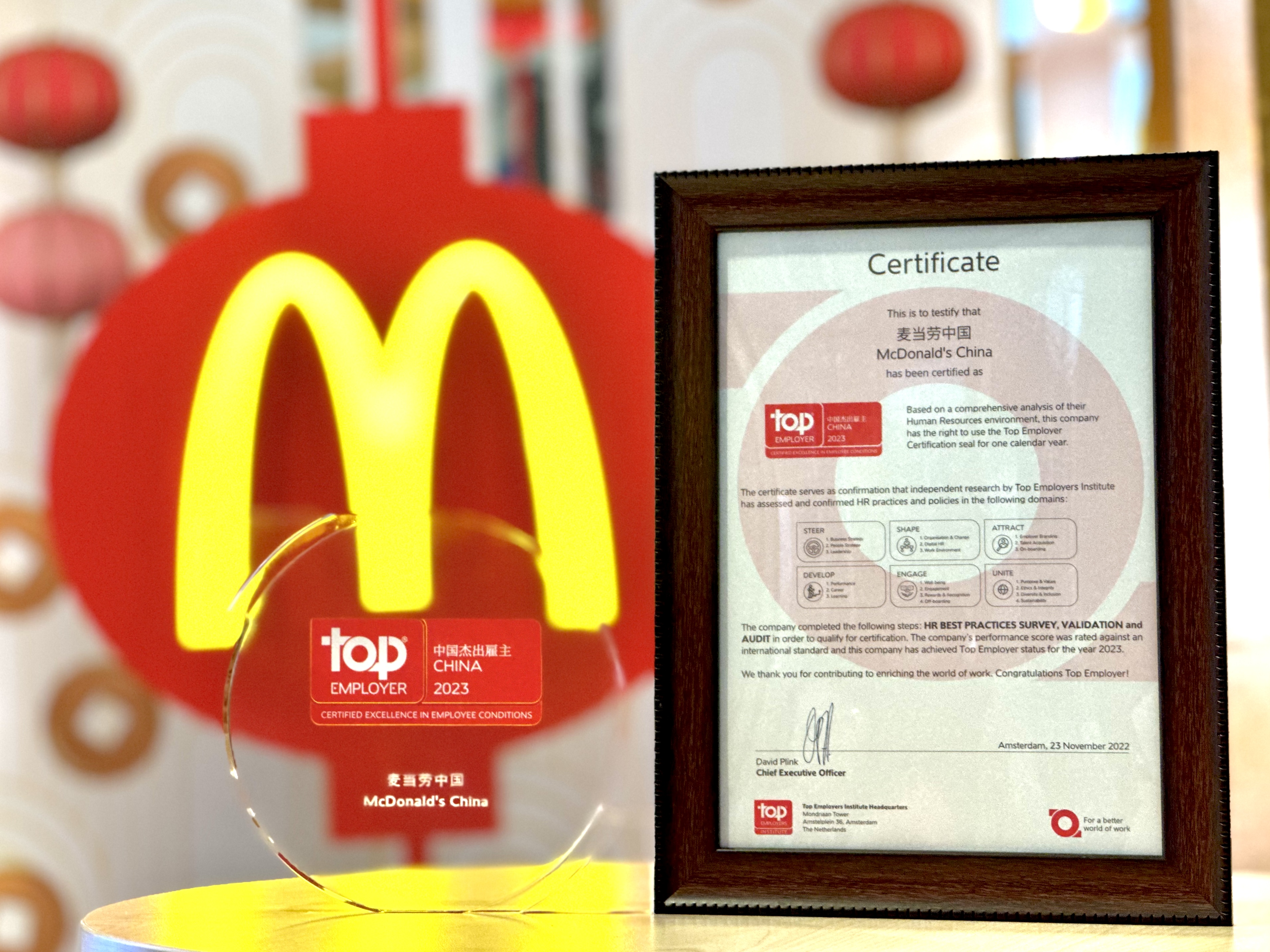 麥當(dāng)勞中國第十三次榮獲“中國杰出雇主”認(rèn)證